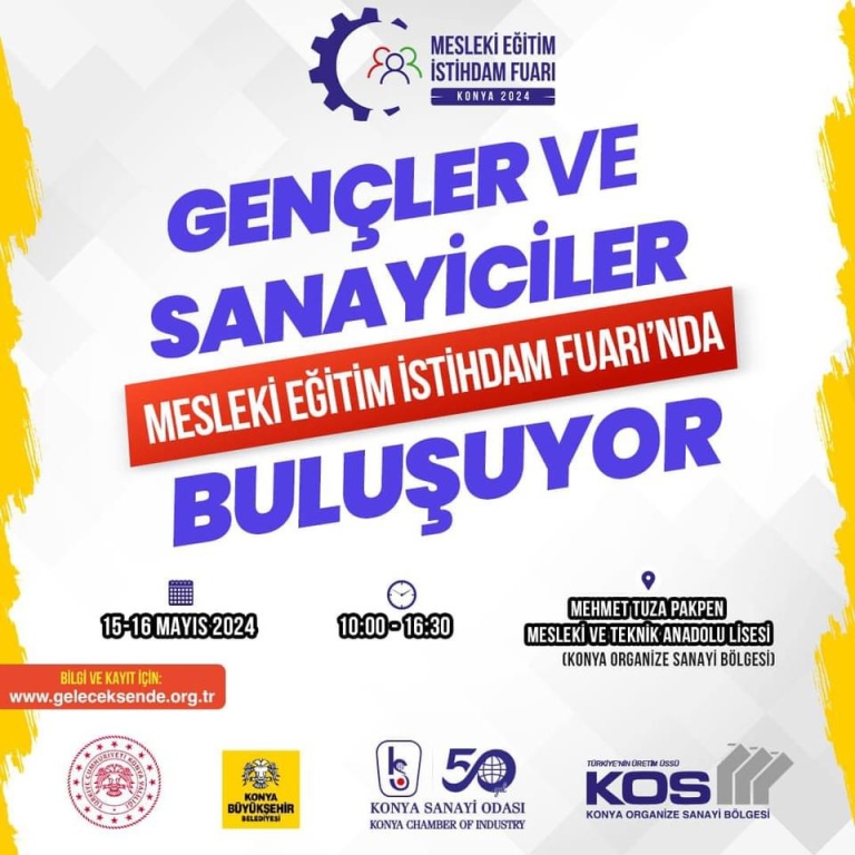 Okulumuzda düzenlenen fuarın kurdelesi,Konya Valisi Vahdettin Özkan, Konya Büyükşehir Belediye Başkan Vekili Mustafa Uzbaş, Konya Sanayi Odası Başkanı Mustafa Büyükeğen, Konya Organize Sanayi Bölgesi Başkanı Memiş Kütükcü ve Konya protokolü tarafından kesildi. Bölge sanayicileri, meslek lisesi öğrencileri ile davetlilerin yoğun katılım gösterdiği fuarda, 90 firma ve kurum stant açtı. Fuar, öğrencilere staj, mezunlara iş imkanı sunuyor.